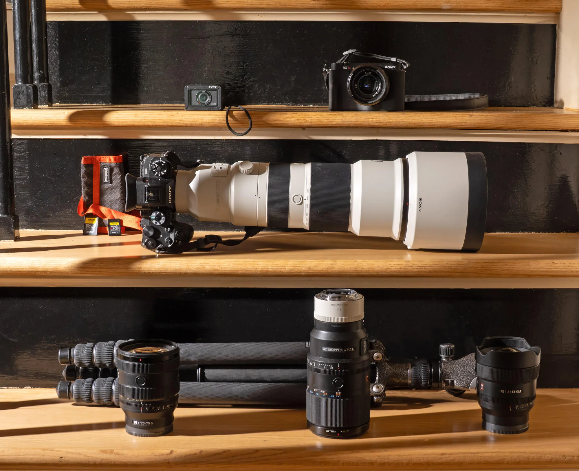 RX1R III: Esta es mi cámara siempre conmigo, está en mi mochila a mi lado en el tren a casa mientras escribo esto. Lo conseguí porque estaba tomando demasiadas fotos de mi hija con mi teléfono. Súper ligera y pequeña, con mucha resolución y enfoque automático rápido, es una gran cámara. Lo tengo a mano en caso de que mi hija quiera salir, o vamos a dar un paseo.